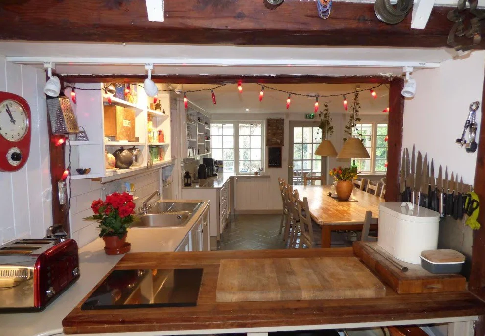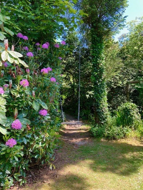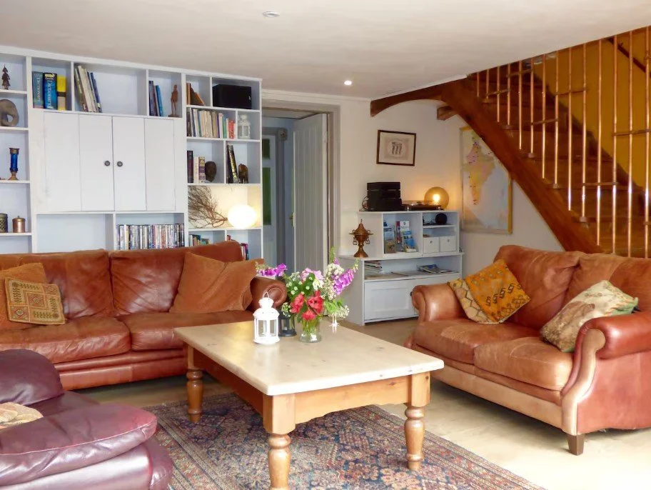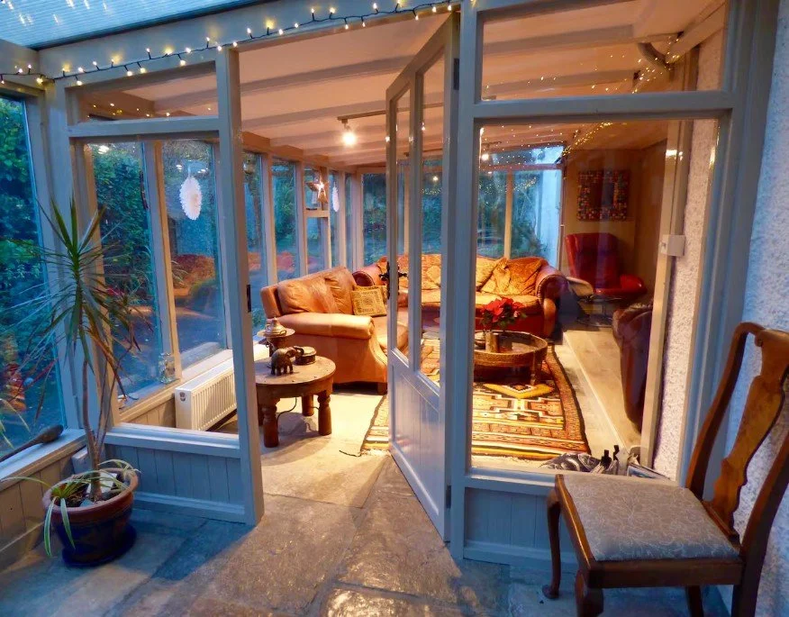 Outside, mature, wild, and playful gardens unfold, spaces to wander, rest, laugh, or simply be. A sun-kissed terrace, a fire pit for evenings under the stars, and open skies invite connection and conversation long after the day softens into night.