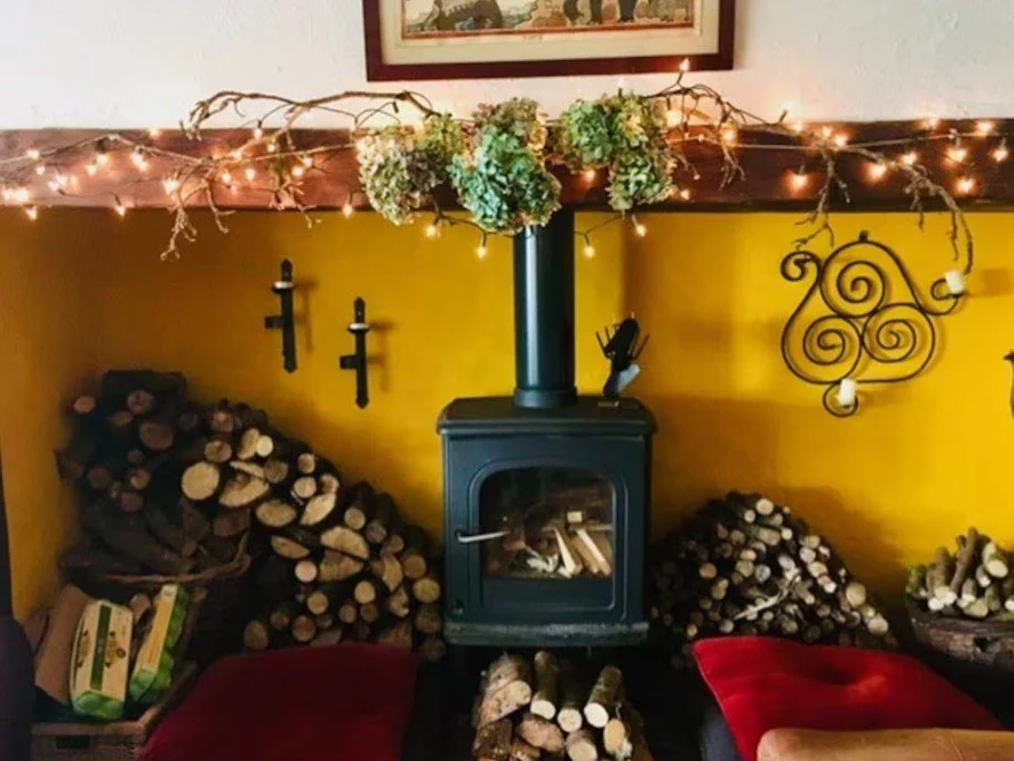 Inside and out, the space feels warm, grounded, and alive. A wood-burning stove anchors the heart of the home, creating a sense of comfort and togetherness.