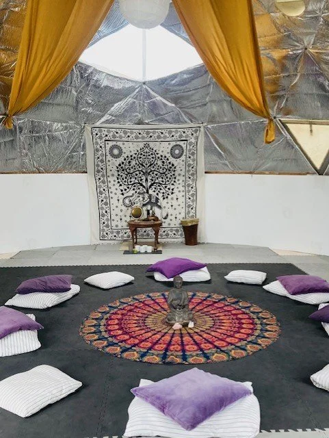 The geodesic dome and dome gardens add a touch of magic: sacred, circular spaces that feel both grounding and expansive, perfect for gathering, practice, and shared presence.